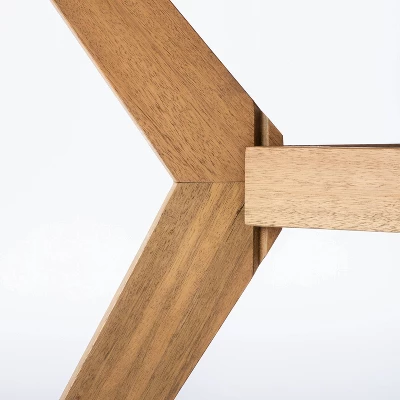 Enjoy dining outdoors on a sunny day with this Bluffdale Wood 6-Person Round Patio Dining Table from Threshold™ designed with Studio McGee. This wooden dining table makes a practical addition to your backyard, patio, deck or any other outdoor space. Designed to seat up to six people, it features a rounded shape with a spacious slatted top for resting your drinks, dishes and other items. The weather-resistant finish allows for use season after season, and the natural frame color coordinates with any decor. Pair with outdoor dining chairs from the same collection to complete the cohesive look.