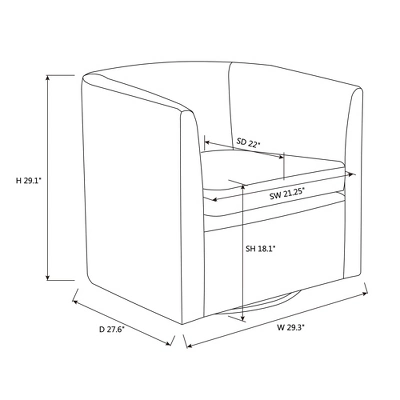 Complete your living room seating arrangement with this Vernon Upholstered Barrel Swivel Chair from Threshold™ designed with Studio McGee. This barrel swivel chair showcases velvet fabric upholstery to add a luxe look to your space. Featuring a 360-degree swivel mechanism, It strikes a barrel-like silhouette, and the padded seat provides extra support when you’re curled up with some magazines or watching TV. Plus, it comes in a solid color that makes it easy to pair with existing decor.